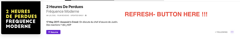 Comment, dans ce putain de logiciel, ont refresh les nouveaux podcasts d’un podcast en particulier ? « Spoiler alert », pas possible (du moins j’ai pas trouvé). Le seul moyen est d’aller dans File -> refresh feeds, pour refresher touuuuuuus les podcads. Ptdr, c’était si compliqué que cela de mettre un bouton refresh dans l’interface du podcast même ?