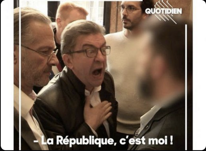 Alors cela veut dire quoi ? Simple, Imaginez Melenchon président et en réunion. Un de ces ministres lui annonce que ces théories fumeuses sont fausses et que la loi qu’il veut faire passer va à l’encontre des lois de la république. Il va quoi ? Sortir une arme et buter son ministre en gueulant sur le cadavre : LA RÉPUBLIQUE, C’EST MOI ?