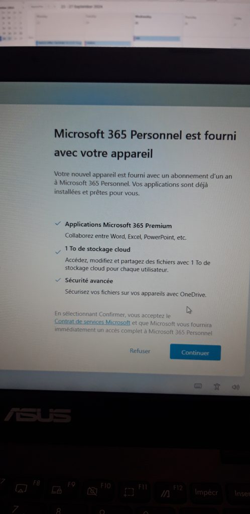 Pourtant, le pire arrive. Une suite de questions débile, mais qui n’en finit pas… c’est une horreur. Par exemple, plusieurs fois Microsoft veut que j’utilise 365 Personnel. pffff non je ne veux pas utiliser cette dobe. Non je ne veux pas non plus envoyer toutes mes données chez Microsoft. Non je ne veux pas te dire mes centres d’intérêt, etc…